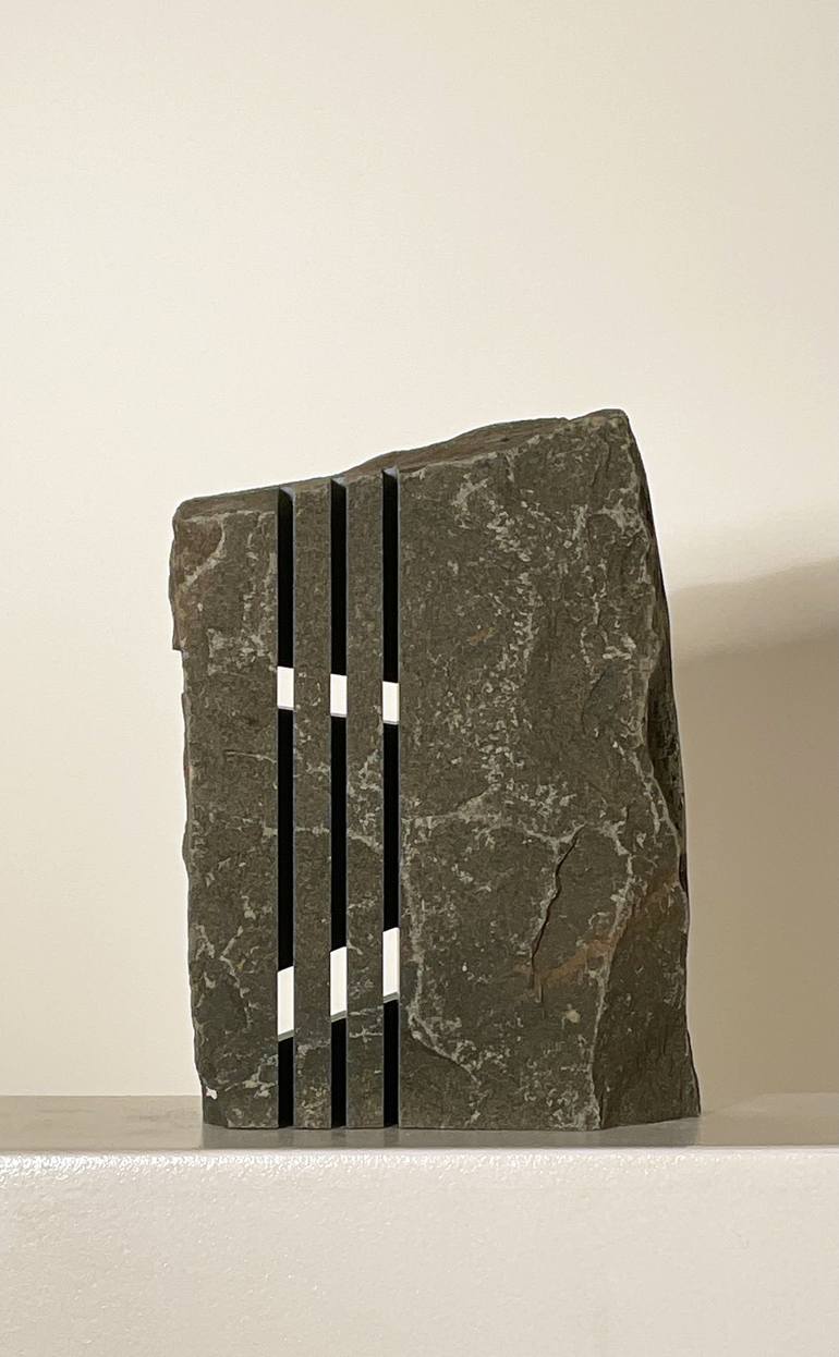 The sculptures from the "Bildstein" series all follow the same question: How can one penetrate the interior of the stone and make it accessible to the viewer without depriving him of his soul? The artist achieves this goal by making deep incisions on both sides that allow views through, and by divid...