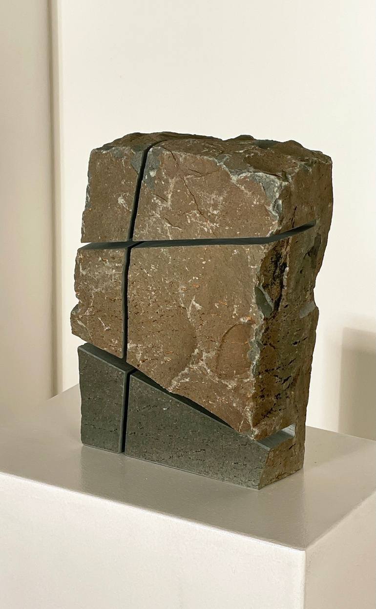 The sculptures from the "Bildstein" series all follow the same question: How can one penetrate the interior of the stone and make it accessible to the viewer without depriving him of his soul? The artist achieves this goal by making deep incisions on both sides that allow views through, and by divid...