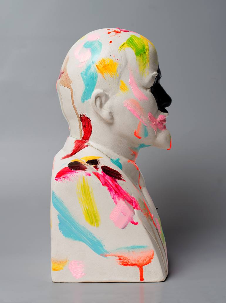 Oleksandr Balbyshev was born in 1985 in Ukraine, one of the biggest Soviet Republics. After graduating from The Prydniprovska State Academy of Civil Engineering and Architecture in 2012, he was working in the sphere of architecture and design. But two years later, in connection with the revolutionary events in Ukraine, a serious financial crisis began. In 2016 Oleksandr lost his job. He decided to change activities and become an artist. Oleksandr currently lives and works in Dnipro, Ukraine. The most important themes in Oleksandr’s art are male sexuality and sensuality. But it’s a means rather than an end in itself. Artist wants the viewer to see the realm of ideas in faces and bodies not only a realistic image of a human. He tries to combine in his paintings realities, as visions of worlds within worlds. They show us an image of ourselves and also hint that there is more to us than we know. Another important part of Oleksandr’s art is to modify old Soviet-era portraits of Lenin. Artist finds original portraits and sculptures of Lenin made in the Soviet era on flea markets and on announcements on the Internet. He paints on top of old portraits of Lenin fragments from famous paintings or drip paint on them, cut the canvases into pieces and glue them in a chaotic manner, let them paint them for children, he paints the sculptures in funny colors and glues them with various objects. As a result of this artistic gesture, the artist erases the propaganda and ideological meanings of the image, at the same time endowing it with decorative qualities. However, with all the fun of this manipulation, the artwork acquires new meanings, an antinomical combination of play and seriousness, prompting the viewer to go beyond the accepted paradigm. His paintings are in private collections in the USA, Canada, United Kingdom, Germany, Netherlands, France, Italy, Spain, Switzerland, Portugal, Greece, Austria, Sweden, Finland, Czech Republic, Croatia, South Africa, Thailand, Singapore, Australia, Mexico, and Japan.
