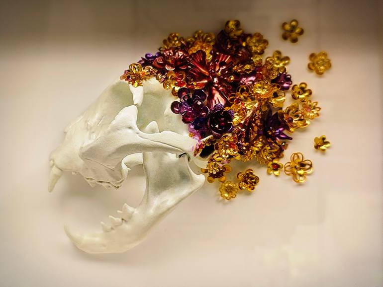 Blossom captures the poignant beauty of transience and rebirth. The centerpiece — a delicately modeled cat skull in resin — is crowned with hand-forged metal flowers, crafted using the traditional Takaoka metal engraving techniques from my hometown in Toyama, Japan. The vivid explosion of gold and ...