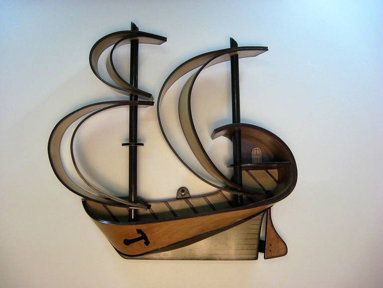 The sail boat is built for wall hanging. The abstract design give's the impression of the rolling seas. I use 1/16 of an inch veneered wood, Maple and Birch - Canadian hard wood. I use the same method and procedure for all my artworks. Each part has different thickness of lamination for durability a...