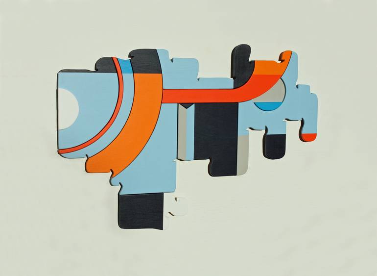 Vince is a London born, Bath city based artist who's work offers an alternative to the conventional plane and shape of framed paintings by bringing his sculptural wall art to attention the viewer. He creates artworks that focus on the interaction of colours, shape and depth. The composition and palette choices are influenced heavily by his teenage years spent as a graffiti artist. The evolution of this, post-graffiti genre, is evident in his work by the way he carefully composes sculptures of spacial balance making use of geometric and abstract forms. Vince's skillset is based in fine woodworking that has been passed down through generations of Bauhaus orientated artisans in his family. The discovery of artists such as Paul Klee, Joan Miro and Wassily Kandinsky urged him to introduce colour to his sculptures. His artworks can be found in both private and corporate collections worldwide. The Bath Times have run features on his work over a number of publications. His pieces are constructed from premium birch ply. They are brush painted in artists quality acrylic paint.