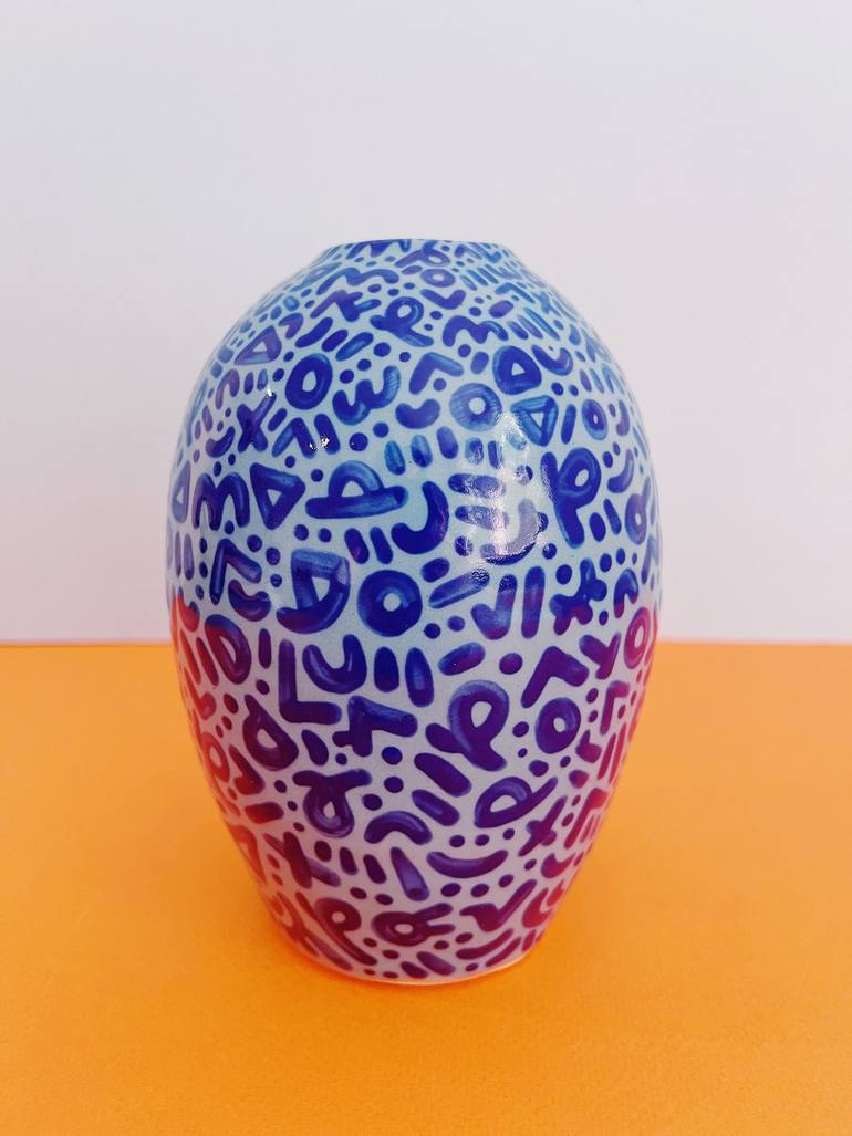 All of my ceramics are a collaborative project with my mother, Angela, who is a ceramicist. She creates all the vessels and I hand glaze them. Then they are fired in our own kiln to the exact temperature necessary. When it comes to my mark making technique, I like to say it's my "brush stroke" (Some...
