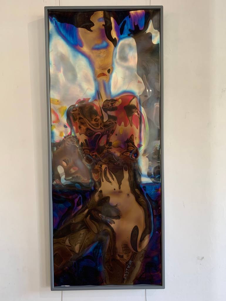The painting on metal is made in the author's technique. There is a mount on the back. The work partially reflects the environment. The frame is made of steel and covered with acrylic paint. The painting reflecting the environment is made of stainless steel. The work comes in a beautiful package.