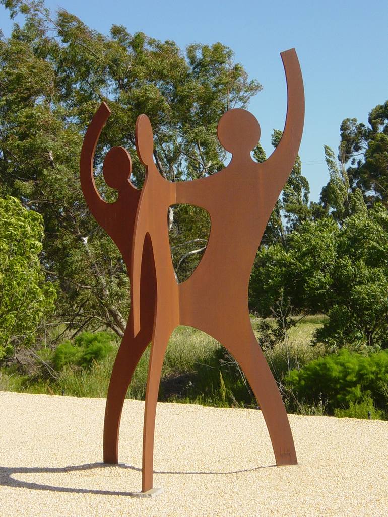 The sculpture Bond is a combination of three figures connected together, each figure's gesture expresses different emotions, joined together they are destined to live as one creating a harmony. I would have to say there is a Keith Herring influence in there somewhere but not a planned reference in ...