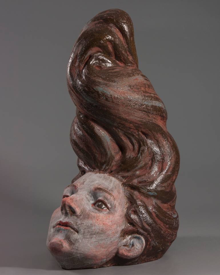This is a charming female portrait. It is made of fireclay and fired to cone 6. The coloured coating has a complex multi-layer application technique, which includes microcrystalline glazes, angobas, oxides and special author's mixtures and several firings. This is done to achieve a deep visual imag...