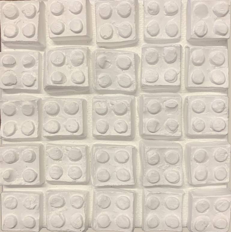 I am a British Artist and Designer that grew up on the South Coast of England. After Art School I received a degree in Fashion Design. While working for the creative fashion company Ted Baker as a Technical Designer, I realized I had a need to create for myself. So, in my spare time, I would create fun contemporary art pieces inspired by my childhood memories. In 1999 I had an exhibition within my own home for fun and invited family and friends. Within a few years I did over twenty pop up art shows around London. I showed my art in small gallery spaces, bars and restaurants. In 2005 I got married and moved to California and was able to work on my art full-time. I had my first group art show in Palm Springs in 2008 at Janssen Art Space. Then in 2010 we moved to Canada. Leaving my art behind in Palm Springs was very difficult. To continue to be creative I started manipulating photos of my original artwork with Photoshop. I discovered I enjoyed making prints using my art as a starting point. I started to use print on demand companies for fun. Other companies then reached out to me and so I started licensing my prints on a wide variety of products. After winning two print competitions with the company Printed Village, they then invited me to go to New York. This was to film an episode of The Profit with Marcus Lemonis with my famous geometric print that one of his companies wanted as a swimsuit. The following year I won the Threadless Accelerator Award, and I was given money to help me boost my art business. In 2018 we returned to Palm Springs. Since moving back, I have had several successful art shows. I am particularly happy that my studio space located next to the family home is now back up and running. While working in it I feel like I have returned to my happy place. I believe that art does not always have to be flat and it does not always have to be on walls. Sometimes I like to paint in blocks of color or stencil my colors using handmade stencils. I also like to use plaster casts and compose my casts on canvas. I work in a minimal and clean way. My work is almost childlike and naïve, but my pieces are created in a well thought out way. Sometimes the ideas have been in my head for a long time before I am able to execute them. My original art works are inspired by memories or stories. In particular I create art that is connected to the games and toys I played with as a child.