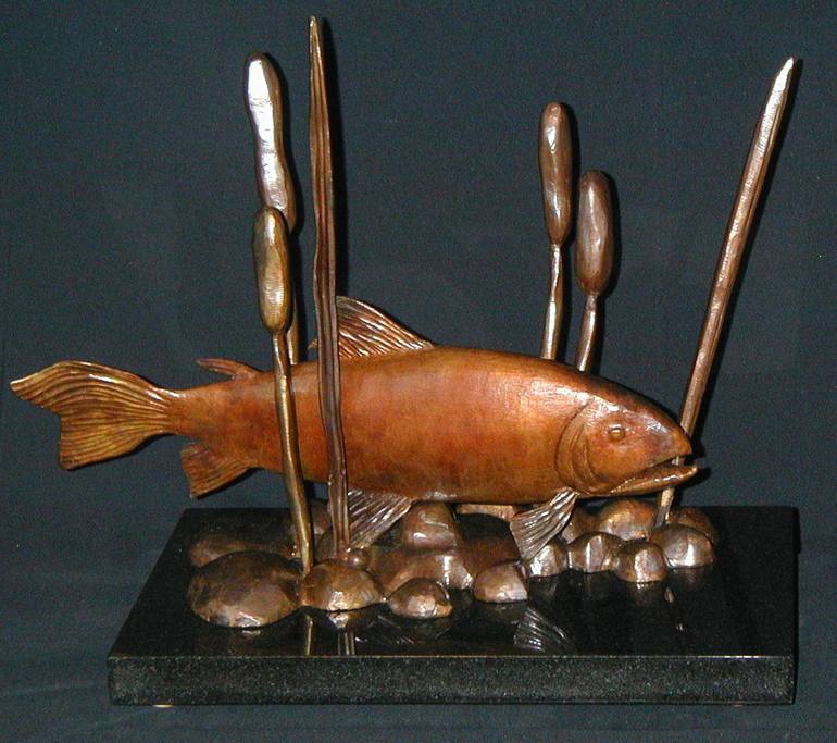Bronze Brown Trout mounted on Black Granite Base, Original Bronze, 1/1