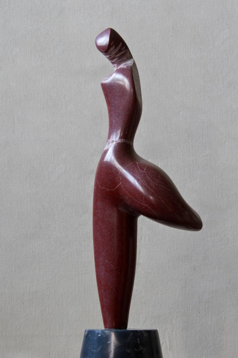 Observing this vigorous rock and envisaging the axis that penetrate its figure, I was able to foresee potential sculpture. I am compelled by the rock, its colour and shape, before forming the final sculpture. Burgundy rocks are abstract human figures – the theme varies.