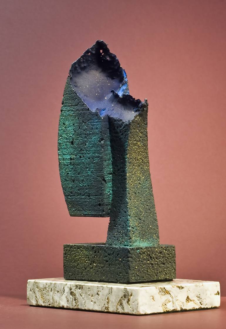 I have an ambitious approach to life ... and to art ... make something happen every day ... but most of all have fun doing it! A sculptor first, and now working in 2D, I do my best to do just that. Presented here are examples of some of my work. •• My sculpture runs the gamut from abstract, to figurative, to architectural. The materials and methods used are diverse ... from figures modeled in clay or wax, then cast in pewter or bronze ... to aluminum maquettes (produced by evaporative pattern casting) which serve as the 3D blueprints for the pieces that are enlarged and fabricated from sheet metal of all kinds. •• My 2D pieces range from abstract to figurative. You’ll find Originals done in oils or acrylic, one-of-a-kind monotypes, collages, mixed media paintings, and more ... I love working in all mediums. Some of my 2D work may be available as reproductions on this site. ••• MY FASCINATION WITH SCIENCE FICTION & MAKE BELIEVE - When I was in second grade, television was new and the hottest thing. The "Adventures of Flash Gordon" was my favorite program. There was only one kid in the neighborhood who had a TV. We, all the kids, gathered at his house for every episode. I was a huge fan of the characters. Flash was cool and my hero. Dale Arden was OK but Princess Aura was way cooler because she was naughty. Ming The Mercilous was very interesting. But Dr. Zarkov and his super duper telescope - that could see into time forwards and backwards, far and near - was the star of the show for me. The spaceship was really hoakey. You could see the wire that it was traveling on and the little puffs of smoke coming out of it were a joke, even for me. But the concept of the show was magical. Also at that time there were radio shows about space travel and aliens and monsters. I would listen to those shows with my grandfather as I sat on the floor next to the big wooden box radio so I could get the full impact of the sounds. •• These shows inspired me to draw spaceships, mostly "new and improved" versions of Flash's ship. I taped them all over my bedroom walls. At night I would travel with Flash. We would go to distant parts of the Universe and explore ancient ruins - like what I saw in National Geographic when I was not looking at the bare-breasted girls of exotic cultures. (I think artists and sculptors, are to a large part, voyeurs.) Those memories pop up in my art over and over. •• Faces also intrigue and inspire me.