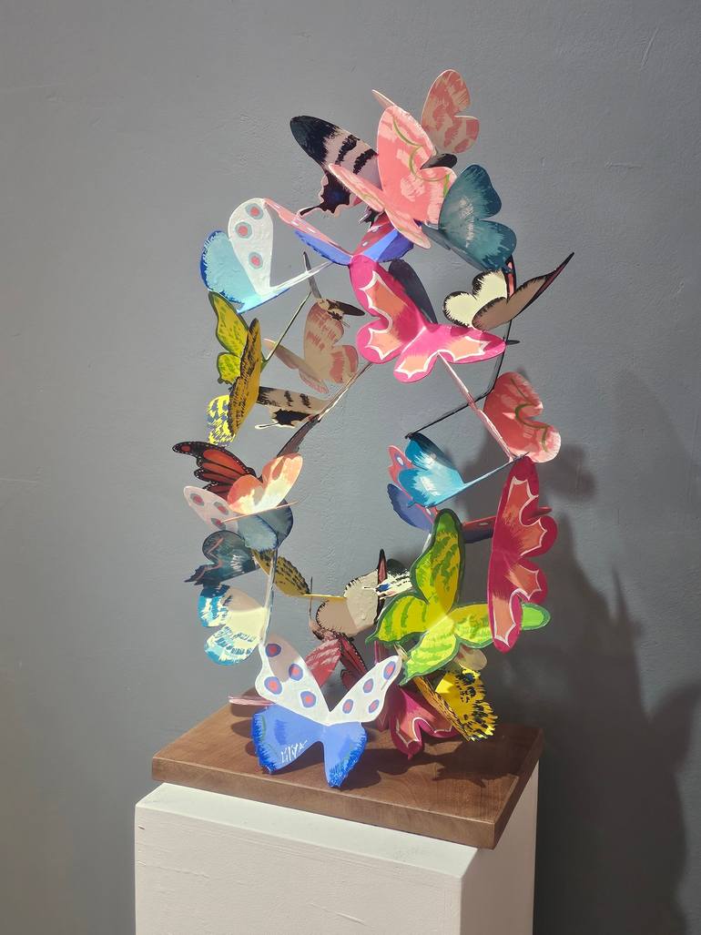 I crafted this piece with a swarm of iron butterflies, to capture the essence of transformation and freedom. Welded together, they form a dynamic object, inviting a sense of motion and serenity into the space. Their dance is a reminder of nature's delicate balance and the beauty that comes with chan...