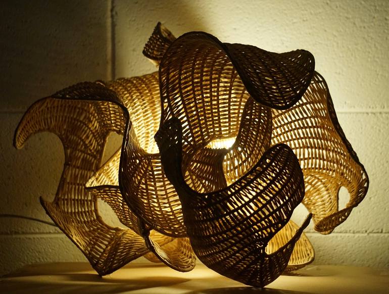 The lamp ©NOM VE was conceived and created by Andromachi Lykartsi (), the weaving was made in collaboration with a craftsman from Myanmar.