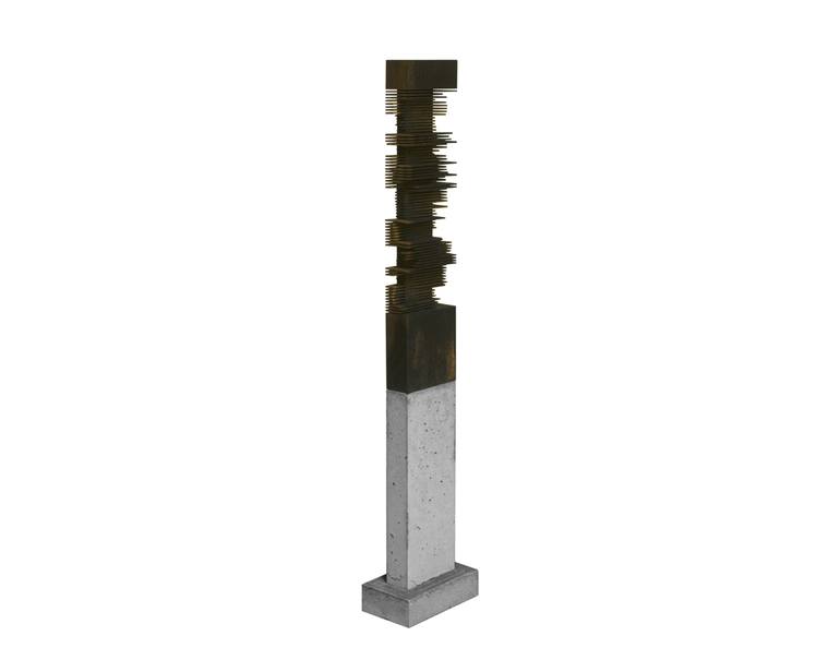 The knowledge and experience Gerstenberger obtained through his earlier work lead filiation-like to new shapes and materials and to the abstract approach of sculptural objects and sculptures of the series Corpus Fractum and Folded Body. The life-size sculptures reach out into the space flooding the stature. The pedestal made of concrete increases the aesthetic value and enables a permanent change of perspective. The gaze is all-seeing and thus demands physical confrontation. The basic artistic concept follows the principle of the confrontation of an organically grown structure with a tectonically constructed one. The original block-like closed shape is erupted by the physically creating access and placed in a new context. The interaction of elevations and depressions - furrowed, dissected, ruptured - in an almost strict stereometric frame creates ridges, folds and furrows within the contour. Light refracts in many fissures, ups and downs. The haptic quality shows smoothness and roughness at the same time without hiding traces of work. The stele-like stability contrasts with the mechanically induced disturbances and legitimises them. Here, the allegorical meaning is that the antagonism of formal rigour is resolved with a random break without disharmony. Individuals who hold artefacts by GERSTENBERGER in their hands, will not only appreciate the haptic encounter and the experience of beauty. For things to become truly enduring, they need a soul, which can be experienced subtly with GERSTENBERGER. GERSTENBERGER makes sculptures, objects and art furniture for individualists, who consciously withdraw themselves from the Zeitgeist and demonstrate this mindset by surrounding themselves with representative objects.