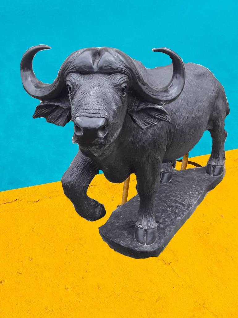 Cape Buffalo / African Buffalo by Taurai Maisiri carved from Springstone. Only 1x in stock. 360 degree product video can be provided if required!