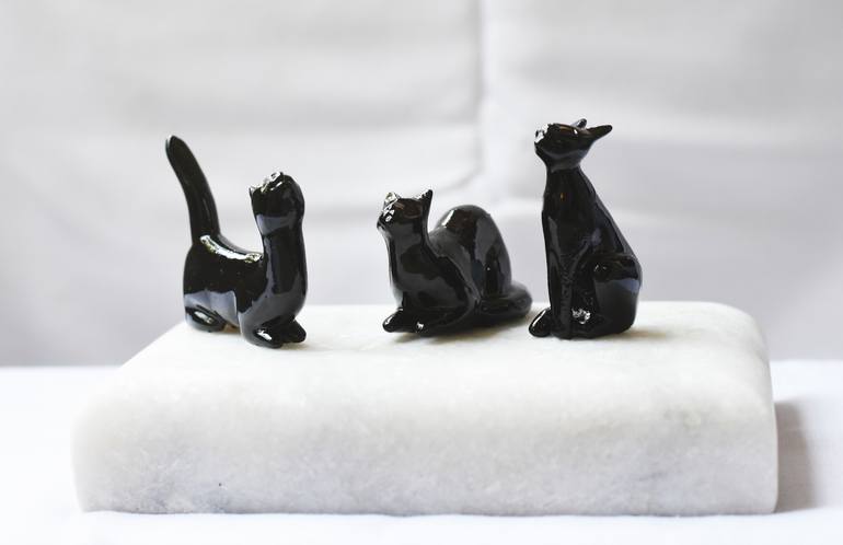 the pedestal size is included in the dimension measure. but each cat dimension is around average 2 x 2 x 2 inch . pedestal material is marble. and each cat made of burnt clay
