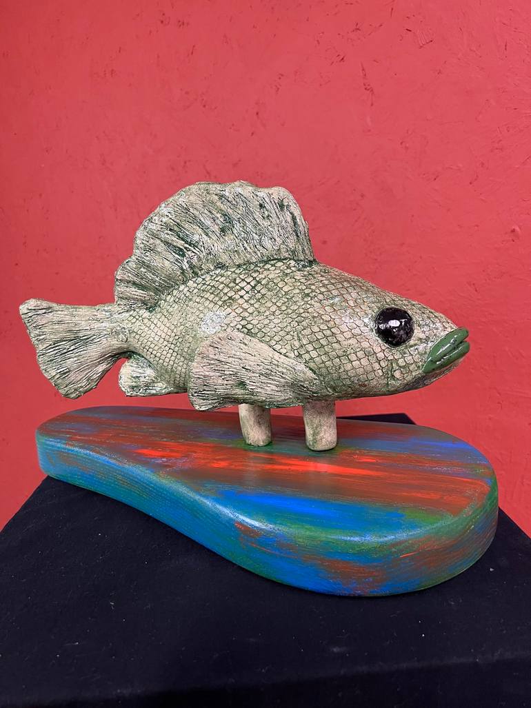 Ceramic Fish: Ocean Depth in Handmade Artwork This ceramic fish is crafted with care and craftsmanship, capturing the mystique of the deep sea. After the fish has been in the oven, it is treated with green oxide, which reflects the texture of the fish with organic color nuances. After this, it is ca...