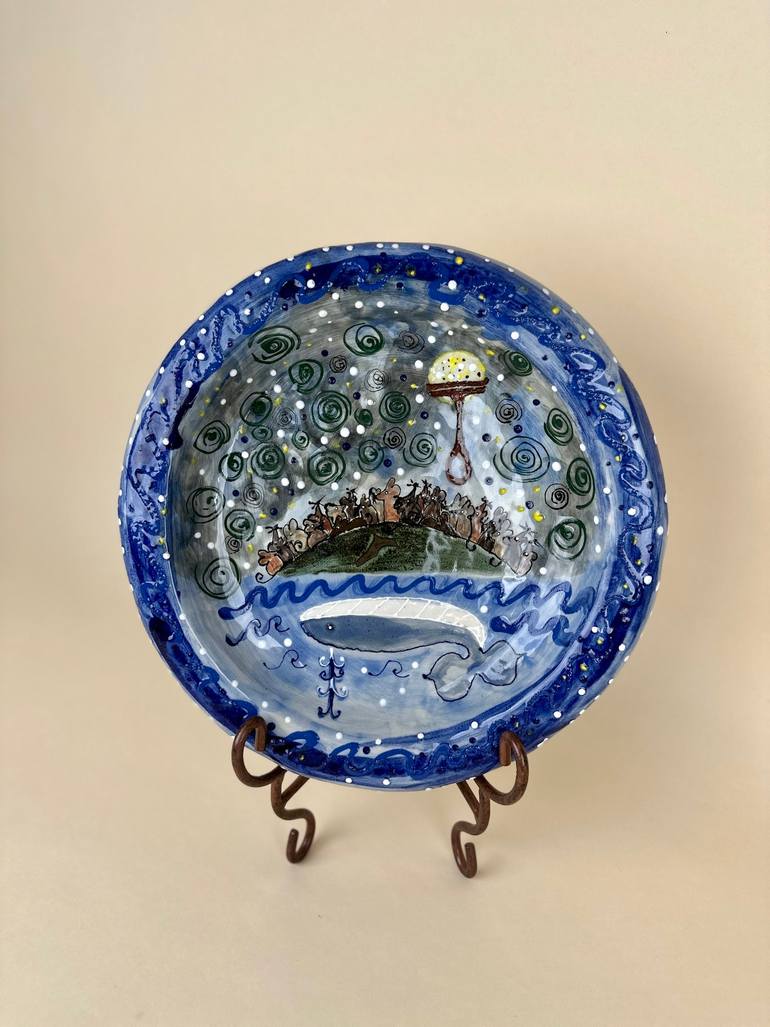 Immerse yourself in the enigmatic narrative of 'Rat Race' or 'Choice,' a captivating ceramic plate meticulously handcrafted and painted with surrealistic finesse. Upon its glazed surface unfolds a scene of profound contemplation—a small plot of land teeming with mice, each embodying the multitude of...