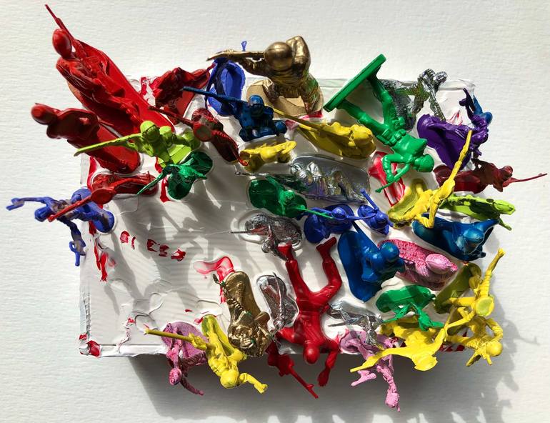 Cheerful Warfare We all know about nuclear warfare, guerrilla warfare and psychological warfare. But what’s it all worth in comparison with a cheerful one? This warfare is open to everyone. Especially for those who own this artwork. A colorful piece of art with an absurdistic lining as always. Thi...
