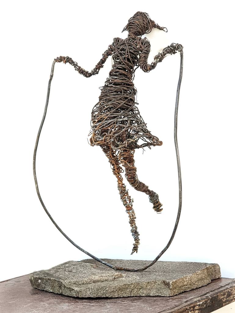 This work is about childhood memories. Each of us with awe of the soul remembers some moments of joy from childhood and it was in those times that we were carefree and happy. The work is made of wire in the style of weaving. The moment of soaring in the air is captured. Having one point of suppo...