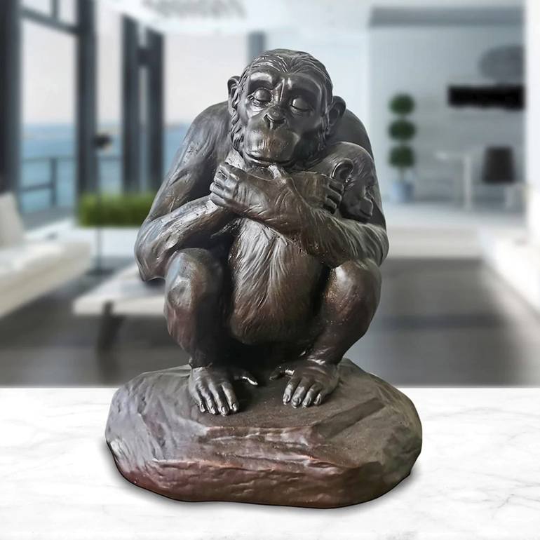 This authentic bronze sculpture titled 'Chimp Love' by artists Gillie and Marc has been meticulously crafted in bronze. It features a baby chimp being held by his mother and comes in a limited-edition series of only 25. They say a mothers love can last forever, and the same is true for chimps. Thi...