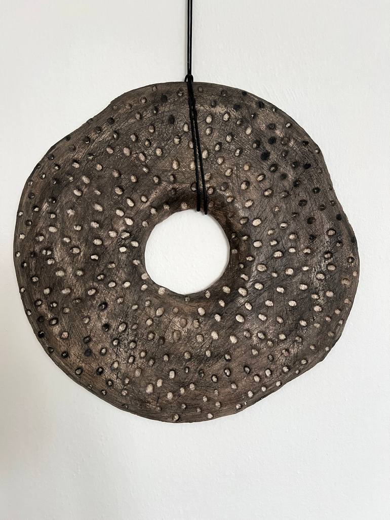 This artwork belongs to a series of reliefs called Circle of Life, which follows my painting based on abstract calligraphy and an interest in Eastern philosophy and lifestyle. The original handcrafted circles represent the connection of perfection in this infinite shape with the ideology of Wabi-sab...