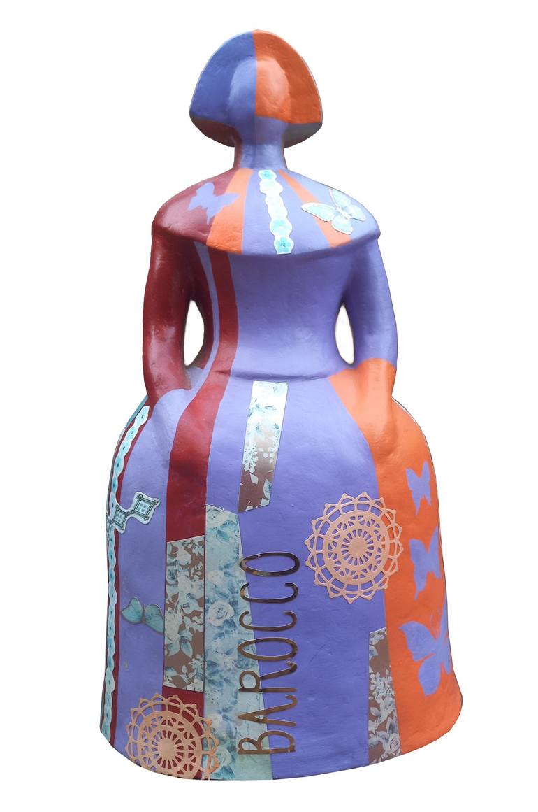 This sculpture is a stylized figure of a woman, inspired by the iconic silhouette of a "Menina"—a type of court lady famously depicted in Diego Velázquez’s painting Las Meninas. Here are some details about the sculpture: Form: The figure has a rounded, voluminous skirt and a simple, abstracted hea...