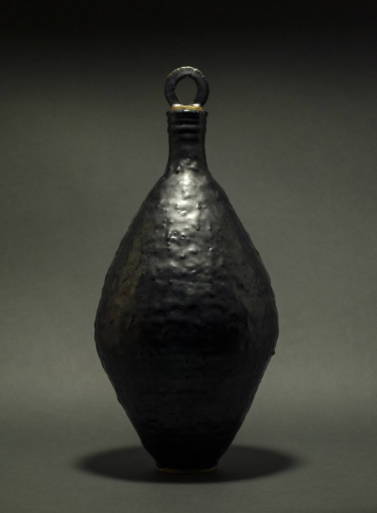 Stoneware "Resonator" Instrument (@+/-100Hz), Hand-built, 18"x7.5", cone 6 fired, oil spot glaze over slip coated body produced a cooled lava metallic like quality. This piece is one in a series of what I call "Resonators". These hand-built stoneware pieces are unique, one-of-a-kind, and produce a ...