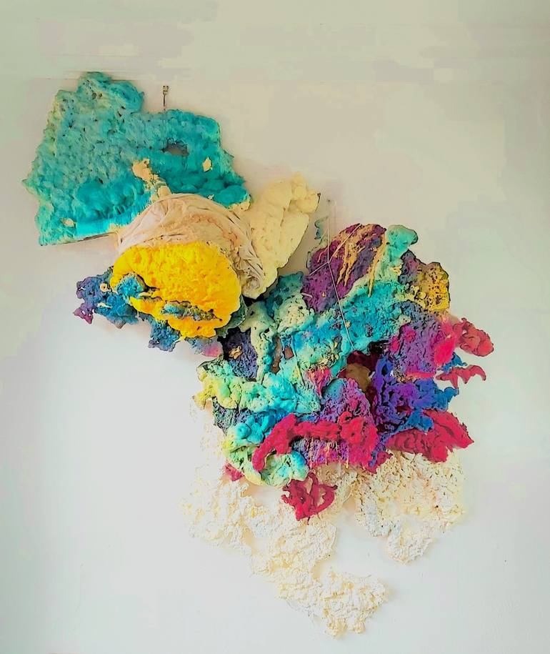 Inspired by scuba diving over coral reefs. An elaborate structure with florid color that evokes naturalistic forms and organic architecture. It grows up and along walls or over surfaces like coral, transforming flat walls into vibrant ecosystems