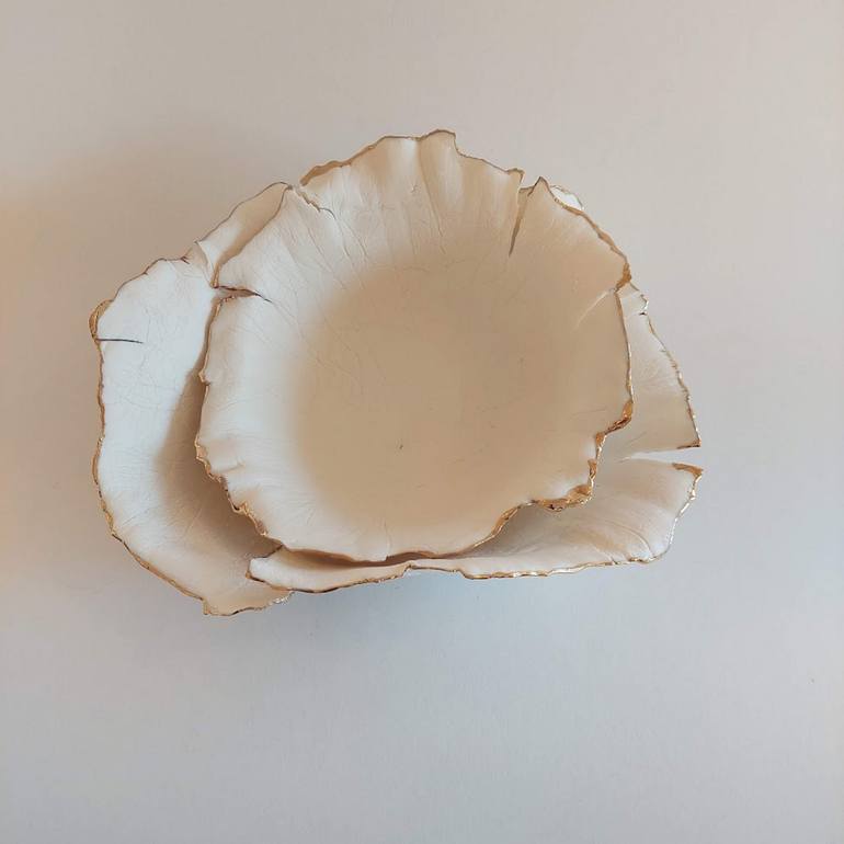 This One-of-a-kind art piece is part of my latest series of hand formed porcelain decorated bowls representing the lovely bolson of flowers and roses. I create decorative bowls in a single and multiple (2-6) layers. Some have the natural white Porcelain; others are painted with a real gold or with p...