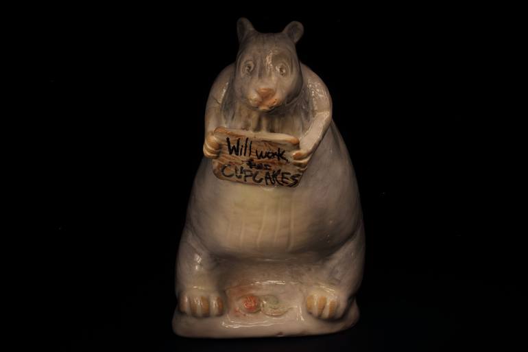 The sculptures I create are inspired by the figurine. By using the body of figurines the sculptures appear traditional, but at second glance it is revealed that these scaled-up figurines have had their decals or possessions stripped and replaced with unconventional, popular logo patterning through method of decal, or with hand built, pop icons. I am interested in the way pop icons and imagery can replace traditional images used as surface decoration on ceramic ware. Historically, culture has been preserved on the surface of ceramics; it is my aim to document as well as create a dialogue about our contemporary culture on the surfaces of my sculptures. In a way, my works are almost an anti-monument; the viewer is able to relate to the piece and recognize that what is occurring in my sculptures are connected to what is happening today. They are about the trends people are interested in. I specifically document that which is most popular at the moment; as time passes and fads go out of style and our culture's interests change, my sculptures change as well.
