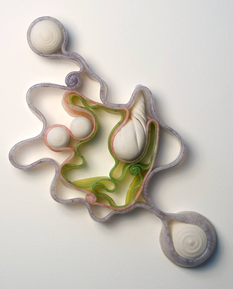 Cross Sections are a series of wall pieces created with thrown porcelain, translucent silicone rubber, and silk (series numbered 1-15). Evocative of bodily function and cross-section anatomy, these sculptural works relate to the flesh and bones that make up our common, yet mysterious interior compos...