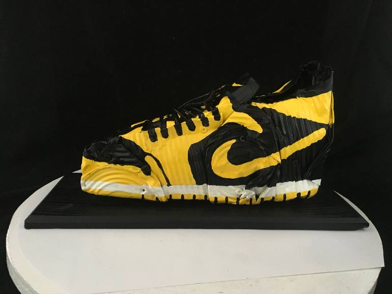 « Crushed Jordan AIR » is an artwork by artist Norman Gekko. The artist used recycled tin cans to produce a striking image of the iconic sneakers, only made out of recycled material.