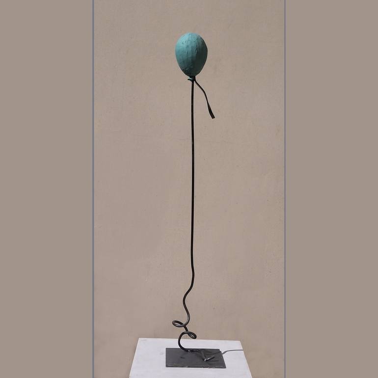 The work expresses freedom, the moment the balloon lifts from the ground beginning its magical trip into the unknown. It challenges the physical rules of gravity floating above the ground.