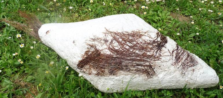 SEVERAL YEARS I WANT TO MAKE SCULPTURES WITH CEMENT. AFTER SEVERAL TRIES HERE WE ARE WITH "DARWIN" SERIE; YOU MAY LIE IT IN YOUR GARDEN OR TERRACE, OR INSIDE; 3 COUCHES DE VERNIS INCOLORE SATINE.( DOUX AU TOUCHER) LES FIBRES DE PALMIER SONT INTEGREES A LA SCULPTURE ET DEPASSENT PARFOIS ( DE 20 CM A...