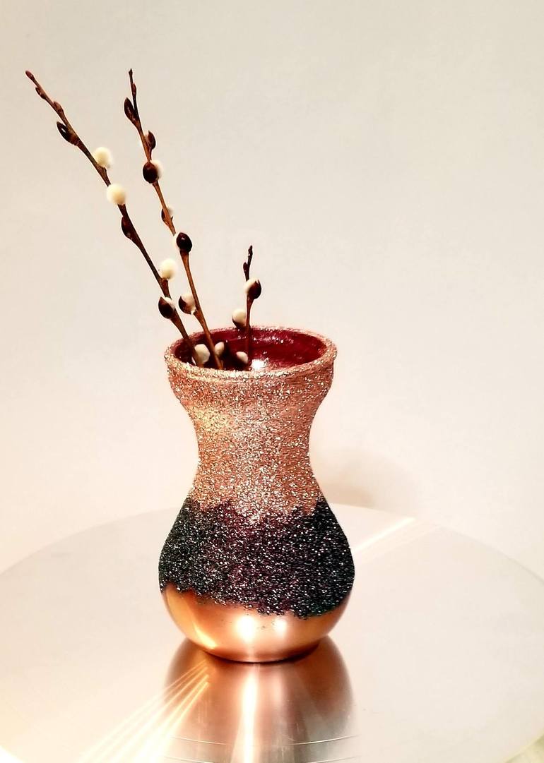Gold rose vases décor by Tatyana Gristes This is one of a kind beautiful vase with acrylic paint, glittered