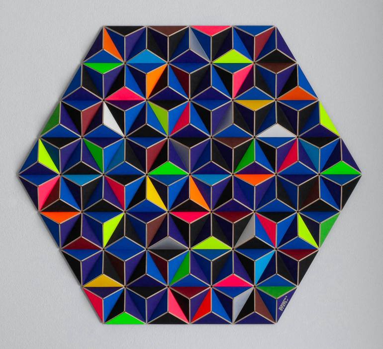 DIS-2 TOPOGRAPHIE blue hexagon limited edition of 20, signed Story: The DIS Series was inspired by friends opening an ice cream parlour in Berlin Neukölln. The cheerful and colourful selection in the ice cream display was playful, bright and appealing – just like the DIS-2. This wall sculpture capt...
