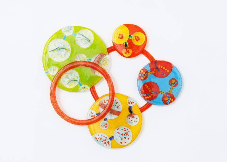 Gina is best known for her vibrant three-dimensional glass wall sculptures. "My designs serve as a gateway into a world where color becomes language." "My inspiration is deeply rooted in the study of color perception. I am intrigued by how people process sensory information in forming opinions, with some more heavily influenced by numbers or words while others are driven by color. Through my work, I delve into the profound relationship between color perception and the connection between artist and observer. Ultimately, I intend to engage viewers in exploring their color perceptions and the beauty that lies within our diverse ways of seeing." Kicked out of bible school for arguing about the existence of dinosaurs and attending a public school without a trace of theatre or art programs, Gina found her first creative outlet in fashion. With a fashion merchandising degree in hand, she progressed as a merchandiser, manager, and apparel buyer before finally attending her first art class at 26. That was it. She left the fashion industry and worked nights as a bartender while studying welding Technology at Georgia Technical College, Jewelry Design at the Spruill Center for the Arts, and Lillstreet Art Center to grow her skill set. Tired of the late nights but still needing a steady income, she landed a life-changing job as a flight attendant with World Airways servicing the US military. “I crisscrossed the globe in a DC10 with 400 troops, traveled to over 25 countries, and had incredible adventures. Imagine ending your work day in an entirely new country. Those years exploring cultures and worlds unknown to me fundamentally shaped me as a person and ignited my pursuit of life as a full-time artist.” Gina lives in Atlanta with her husband, Steve, and their Bengal cats, Luke and Leia. She spends her free time surrounded by her tight-knit group of crazy creative best friends and travel buddies that call themselves the 6Pak.