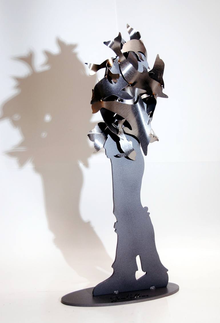 Jim Collins is primarily a Public Art sculptor working in a figurative manner, best exemplified by his long running series the WATCHER. His sculpture style has been characterized by the use of silhouettes of people and animals constructed of stainless steel, aluminum and other metals. Collins was a Professor of Art at the University of Tennessee at Chattanooga. He received degrees from Marshall University in West Virginia, the University of Michigan, and a M.F.A. degree in sculpture from Ohio University. There is more information in Who’s Who in American Art and at the website . His work can be found in many collections in the United States and Ireland with the majority located in the Southeastern United States. Colorful silhouettes of figures and animals can be seen from the Emerald Isle to Plano Texas with the latest additions in Balbriggan County Dublin Ireland and Gulfport, MS..