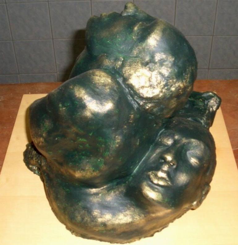 An original sculpture made of special type of clay that was gradually dried and obtained by a solid stone. Has a bronze patina. One of the works of the series of dreams and mythology...