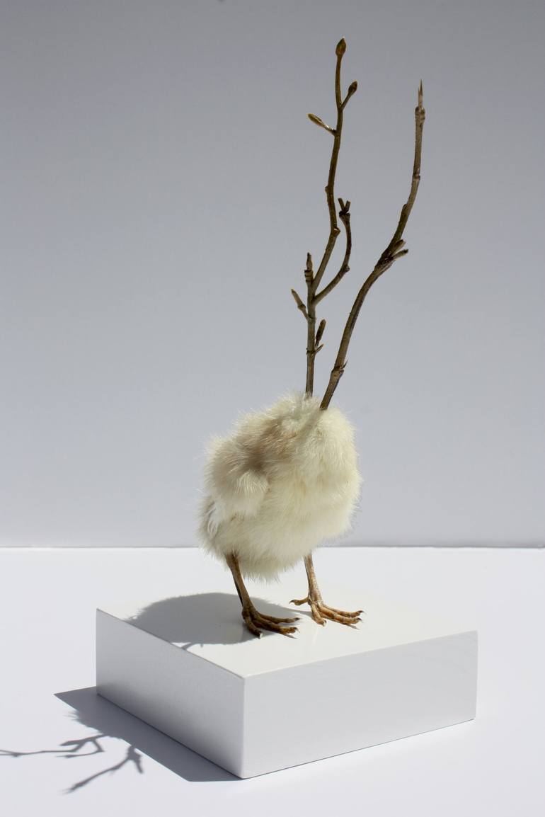 Taxidermy Turkey chick, artificial flora (twigs), wire, wood, enamel paint