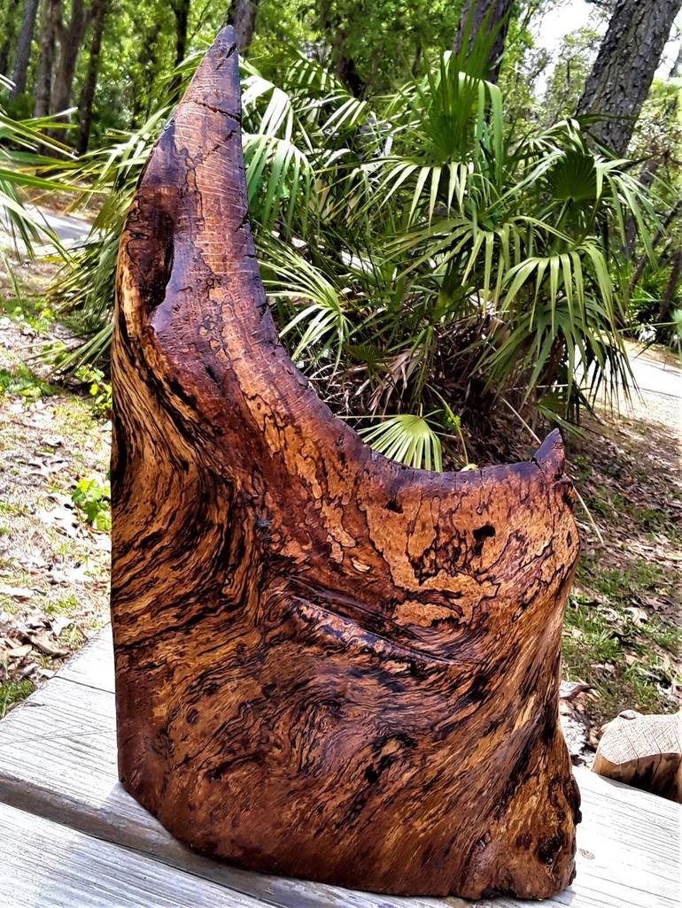 Using sustainable and eco-friendly materials is very important to me; thus, since I work mainly in wood, that means trees downed by disease or storms. I love the way half-decayed wood is beautiful under the exterior rot, and the patterns that stress and age leave in the grain. I work with the wood, not against it. It's a partnership that works well - I do what the wood wants, and it looks the way it is supposed to look. The personality of the wood is condensed and startling, and I try my best to bring that to light. My work is both primitive and sophisticated. It's dichotomous, as are we all inside.