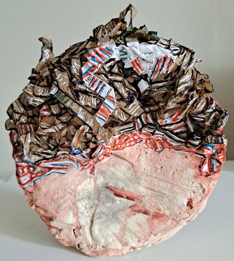 Please contact curator@saatchiart.com Mon regard est attiré par une matière... Je la trouve attirante, belle, sa couleur, son tombé, ses caractéristiques physiques propre. J'amorce un processus. Je prends plaisir à la manipuler, l'articuler, la transformer,l'associer, la sublimer. Elle peut être très humble et destinée à une toute autre utilisation. je ne cherche pas absolument à détourner les objets mais l'idée de créer une œuvre à partir de « rien » me plaît énormément. Mon inspiration se met en marche. Je laisse surgir pêle-mêle et accueille sans censure une idée qui en appelle une autre, j'avance dans le faire à pleine main comme un artisan. Je découvre presque surprise et avec émotion cet objet en train de naître. Il prend forme, se complexifie.Je suis ouverte à toute piste.Parallèlement à l'instauration de l'oeuvre, je mène une réflexion sur celle-ci sans abandonner une grande part instinctive. la matière choisie, associée à d'autres éléments, est en partie transformée . Je prends mon temps afin que ce qui émerge me paraisse suffisamment satisfaisant à tout niveau ( expression de soi et aspect esthétique). Le résultat revêt très souvent une identité primitive, presque d'art tribal, quelque chose qui vient de loin collant à l'inconscient collectif. Une enfance passée sur les bâteaux m'a appris la liberté Mon adolescence a su surmonter la rébellion en prenant les chemins de la poésie En 1994, je découvre la culture amérindienne et se déclenche alors une vague créatrice.comme je travaille alors dans les costumes de théâtre, j'utilise tous les textiles et matériaux à ma portée pour réaliser mes premiers boucliers. Autodidacte. peinture, gravure ou sculpture Depuis mes débuts j'ai participé à de nombreuses expositions (nationales et internationales ) et salons où j'ai gagné des prix et aussi eu la chance d'être en résidence sur l'île de Bendor. encore un temps fort, ma sélection au MacParis du printemps 2019 et nov. 2022. Mon travail totalement instinctif revêt la quête de mon être,si on efface mon éducation, ma culture, tout ce qui m'a été inculqué.qui suis-je ? Qui suis-je vraiment ? Je ne cherche pas à peindre, c'est une pulsion qui s'impose et doit être assouvie une pulsion de vie. j'ai commence A peindre des boucliers inspires des indiens d'Amerique du Nord en 1993.je n'ai jamais cesse de travailler .