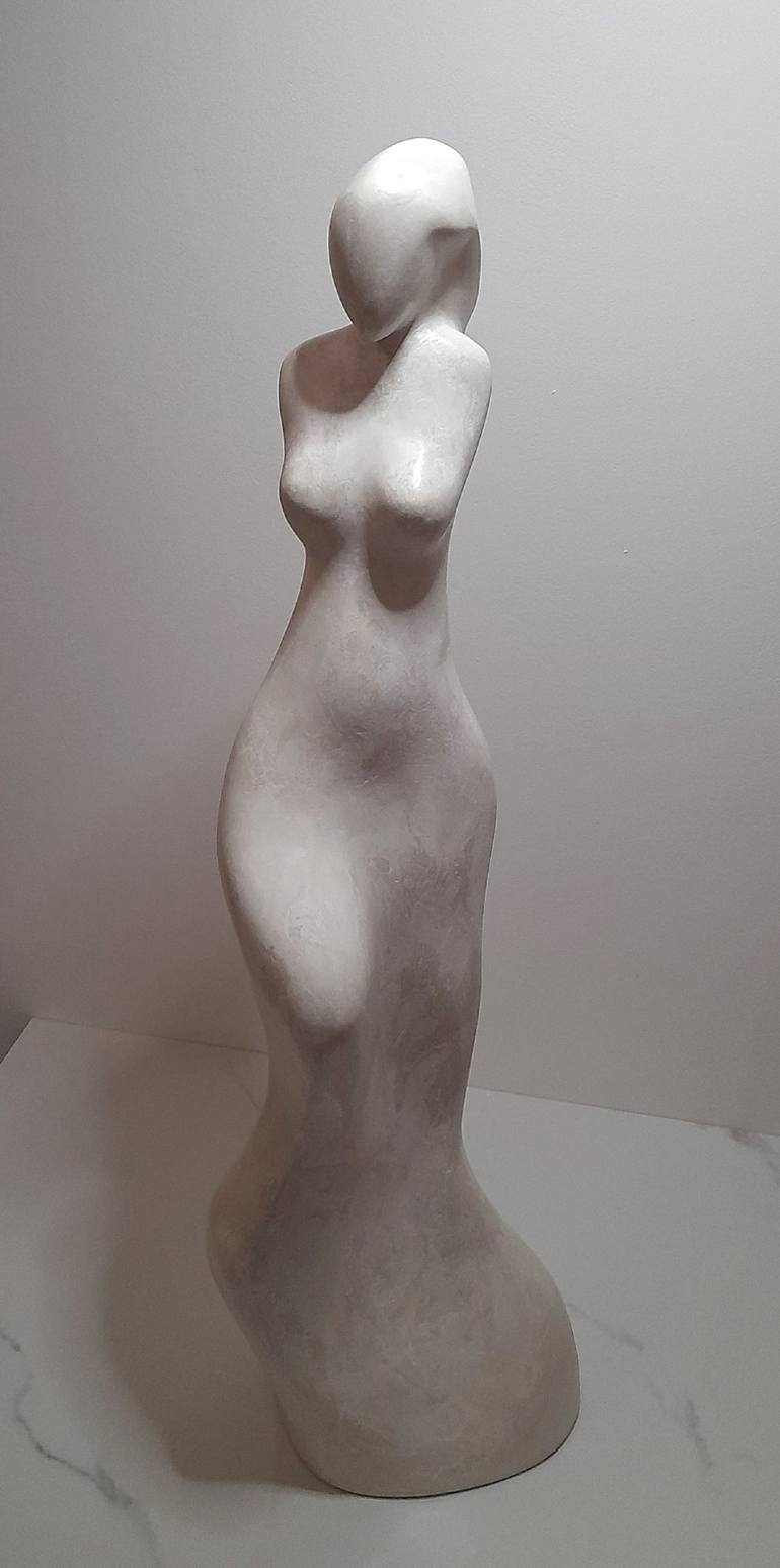 Elegant and gracious; a tribute to the female form. Concrete layered on iron in Clark's unique manner of sculpture. This work is defined by rounded curves and edges which swoop harmoniously throughout. Visible on the surface is the weave and mesh of concrete layers as they were gradually placed on ...