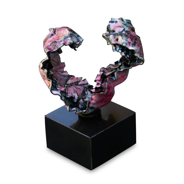 This delicate, two layered heart has gently sculpted edges that embrace both layers, symbolizing one heart shared by two. This unique heart has been created in copper, and is then heated with vitreous enamels to bring one of a kind coloration to the final sculpture. It is available in any color wi...