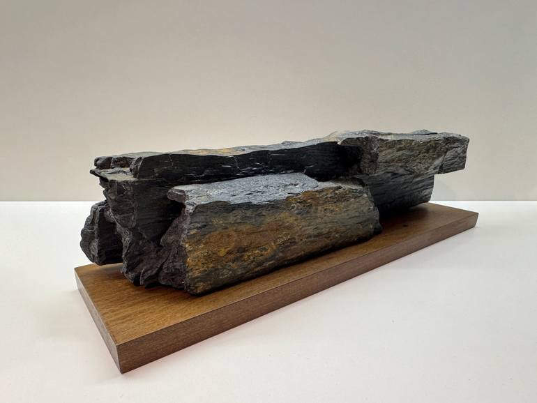 This original artwork is a sculpture made from shale found near Douro river, in Portugal, during an early morning walk. It is a composition of fragments from the same piece of shale, mounted on a wooden base.