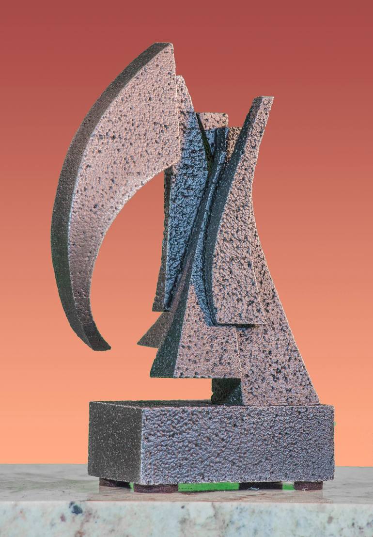 This design gives me the feeling of a musical piece. It can be anything you want it to be. This is a maquette, a solid metal model that is used by a metal fabricator to measure from to make a larger version of. It also makes a desk top sculpture.
