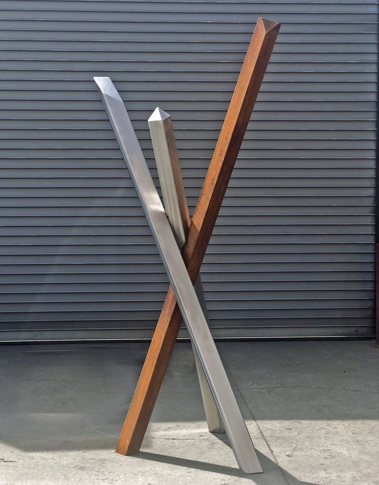 I am fascinated by the contrast when bold clean forms are set in the unrestrained beauty and chaos of nature. This is what I explore with my sculpture. My works are small bits of architecture placed in the landscape. My intention is to transform the viewerʼs environmental experience with intrepid, minimalist, abstract forms. The interplay of reflection, shadow, positive and negative space are all considered as each piece is composed and created.