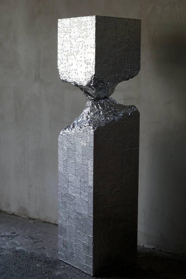 Born in 1980, Lele De Bonis lives and works as a set designer for several companies in the theater, cinema, amusement parks and outdoor scenography sectors. At the same time he has developed a personal artistic path focused on the concept of recovery and assembly, through which he represents what strikes him most in real life. The human being is the center of his works and he usually represents it in a cynical and grotesque key, without ever condemning it. Wood and aluminum are the materials he uses the most. Beyond the message, their constructive juxtaposition allows him to play and experience infinite alchemical relationships between hot and cold materials. Starting from the concept of “ready made”, through his assemblages, Lele is constantly searching for an aesthetic dialogue aimed at creating a material and chromatic balance between the different materials within a composition. His works are a continuous alternation between explicit references to the current historical context and a more abstract, introspective research.