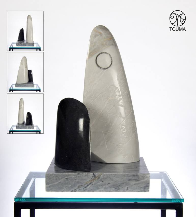 Las claves fundamentales en la obra de TOUMA, es la creación de incisiones a través de la técnica del tallado directo, que penetran en el volumen de la obra creando un diálogo entre la masa y el vacío. Una de mis obsesiones es la constancia y el empeño en las formas curvas, inspiradas tanto en el cuerpo femenino como en las curvas que surgen por casualidad en la naturaleza. Las formas de mis obras son sencillas, puras, ordenadas y limpias, donde combino curvas y espacios buscando una fluidez con ritmos y gestos que consigo retorciendo y creando huecos en la materia, obteniendo un lenguaje de formas orgánicas y abstractas.