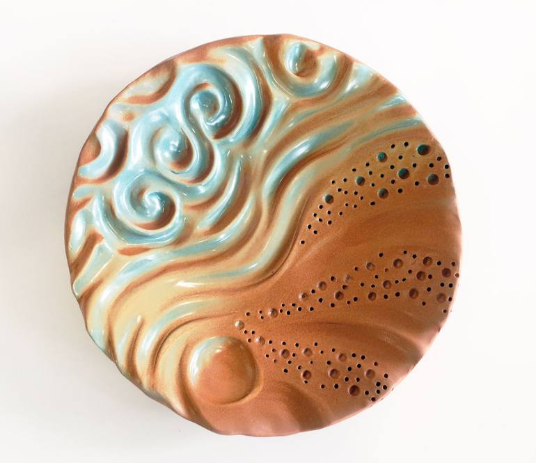 Original artwork made with earthenware clay. Inspired by river currents, the Ebb and Flow decorative ceramic plate plate brings movement and bright earthy tones into the room. Fine Art Ceramic Plates Do you have a large, blank wall that needs decoration, but you don’t want to over-power the room w...